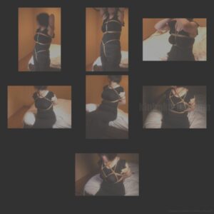 白いブラウスと白いショーツを、濃紺の縄で縛り上げた写真です